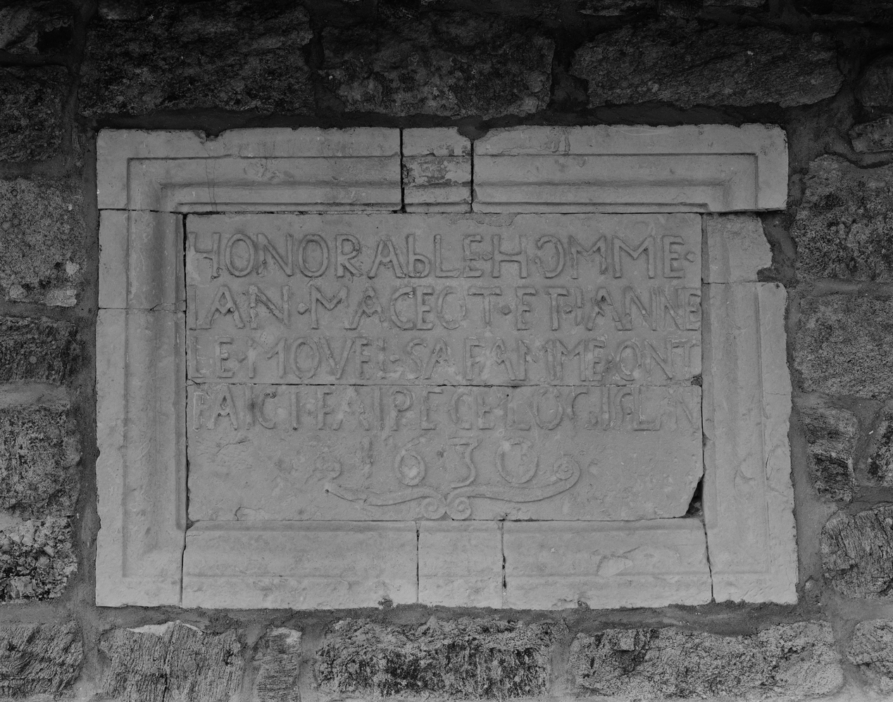 Elévation antérieure nord, partie est : inscription.Immatriculation