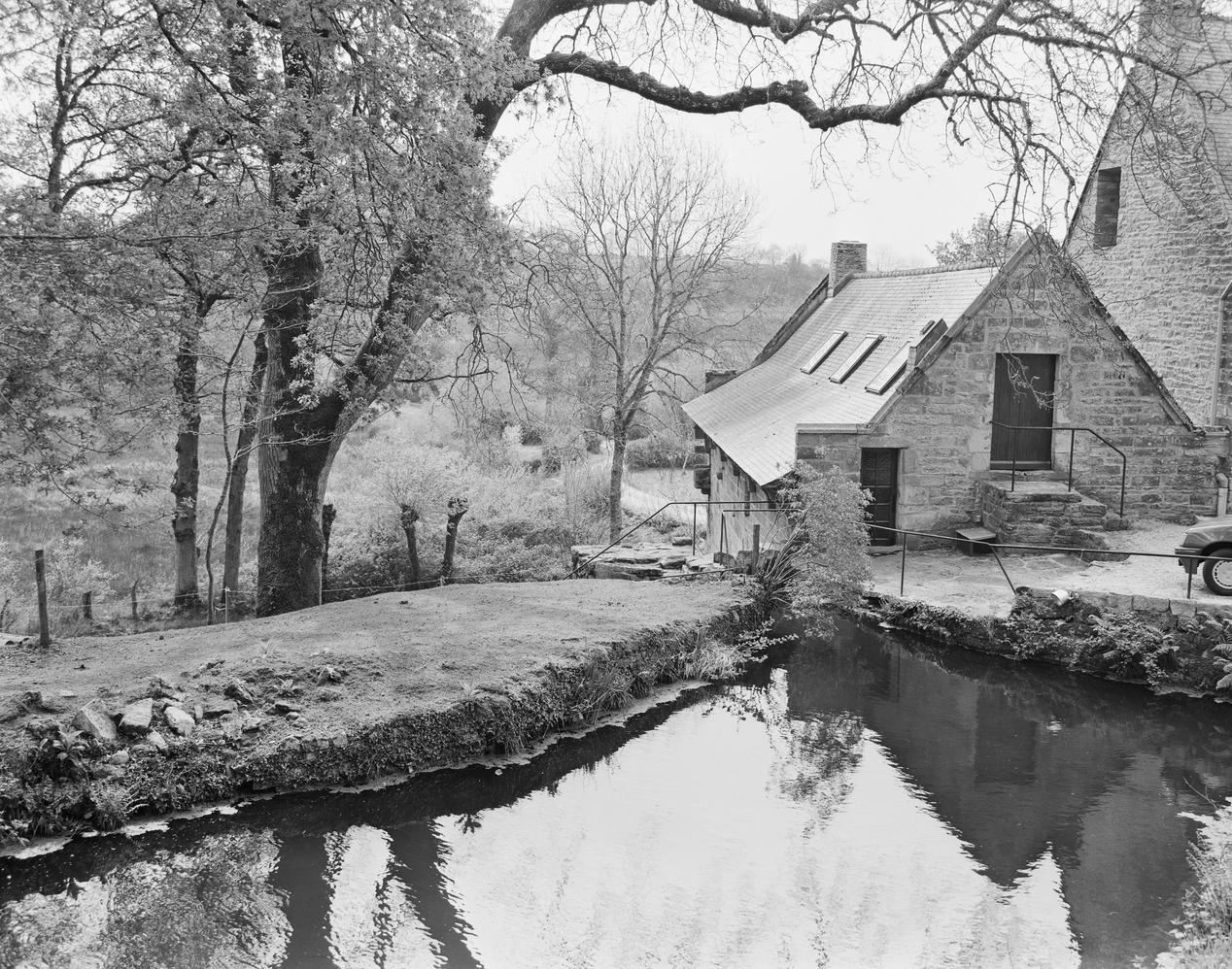 Moulin de Lesnehué, réserve d'eau et pignon ouest.Immatriculation