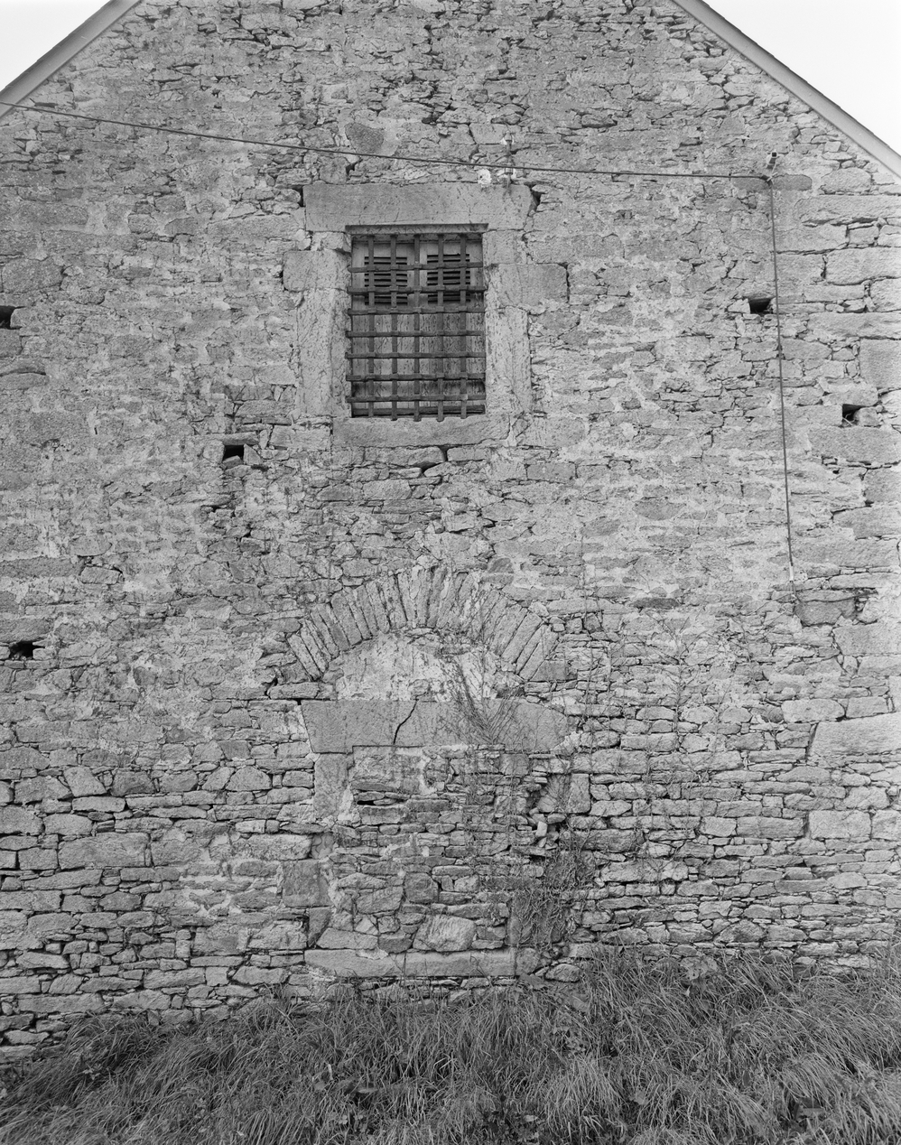 Manoir, corps de passage, face nord : fenêtre bouchée.Immatriculation
