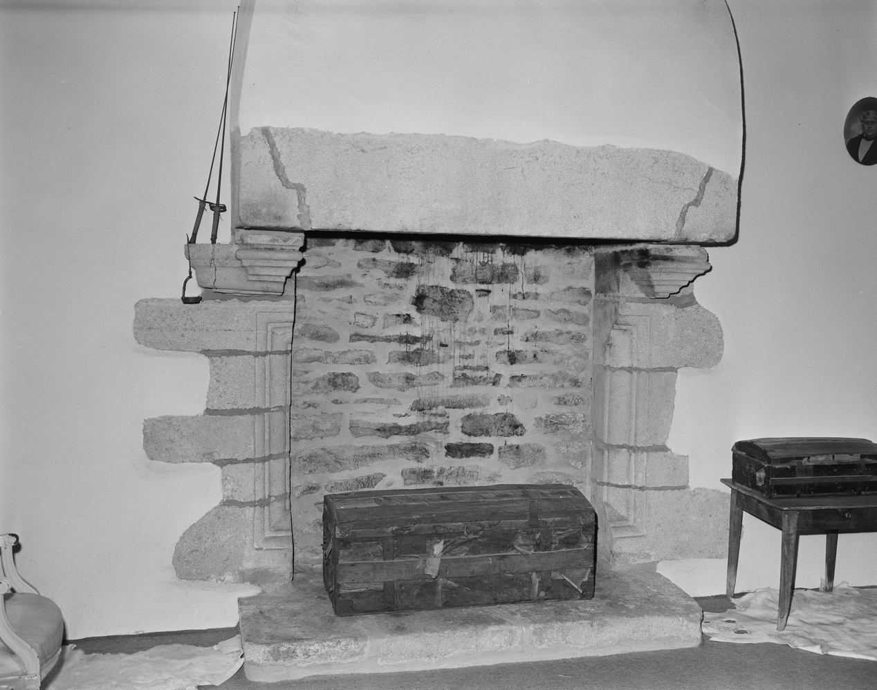 Manoir, étage, pièce nord : cheminée.Immatriculation