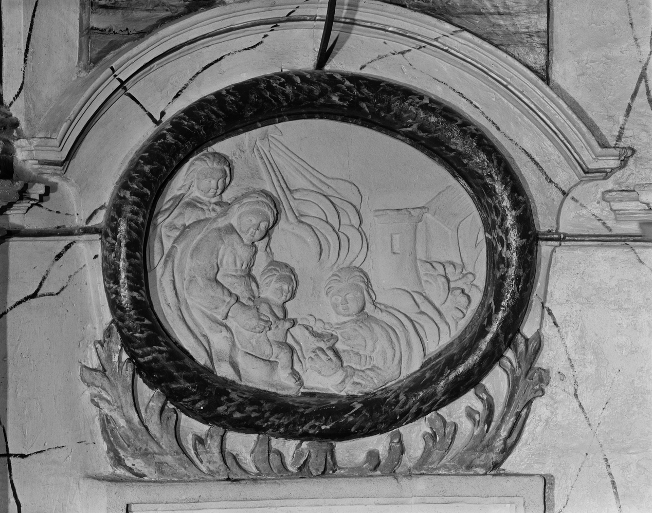 Côté gauche, partie inférieure, médaillon.Immatriculation