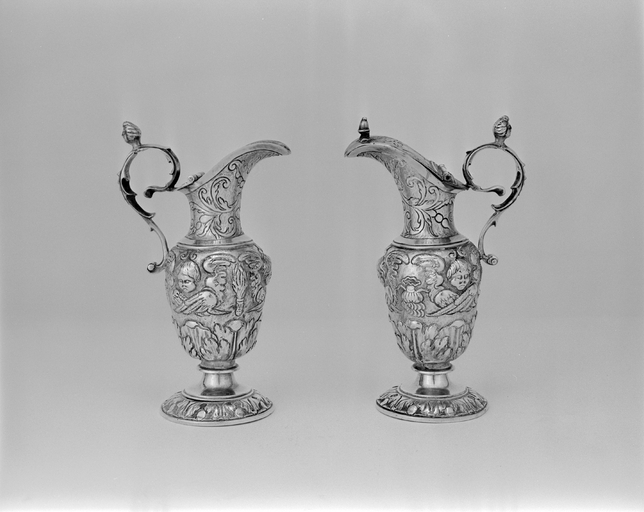Plateau et burettes - Vue des deux burettes prises de profil.Immatriculation