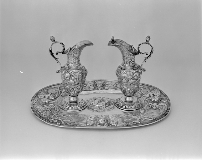 Plateau et burettes - Vue générale de l'ensemble.Immatriculation