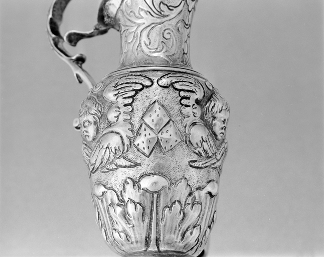 Plateau et burettes - Burette à vin, représentation des dés.Immatriculation
