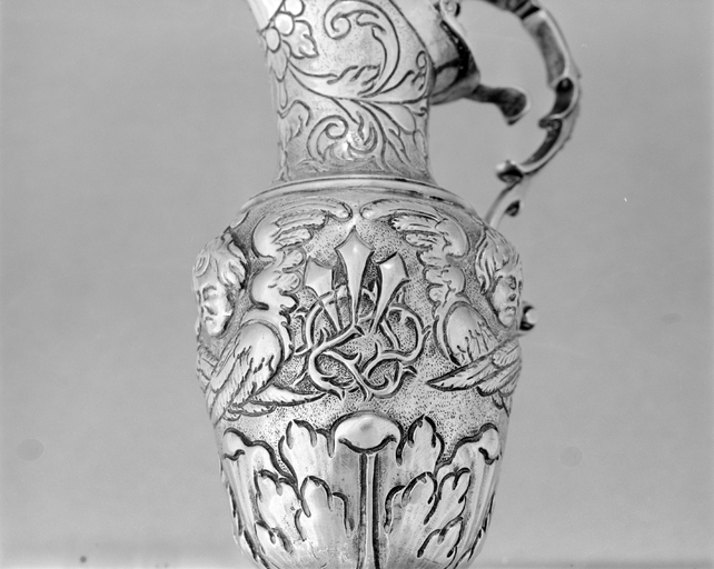 Plateau et burettes - burette à eau, détail, couronne d'épines.Immatriculation
