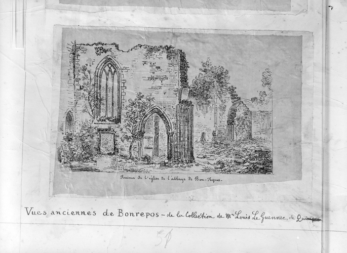 Ruines de l'église (repro. dessin, coll.Le Guennec, Quimper, vers 1859).Immatriculation