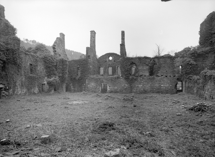 Cloître : vue intérieure prise de l'Est, vers le logis abbatial (état en 1977).Immatriculation