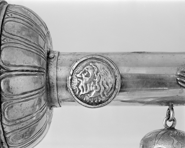 Détail d'un médaillon : personnage et inscriptionImmatriculation