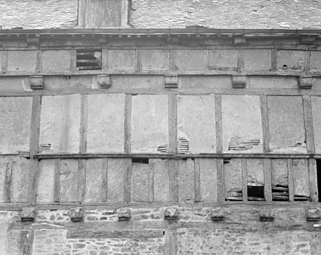 Communs, élévation nord, détail de la mise en oeuvre des matériaux (état en 1990)Immatriculation
