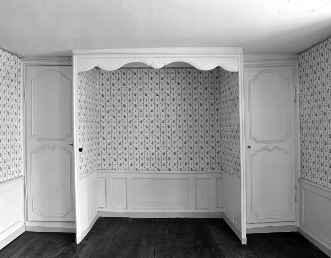 Logis, étage, pièce nord est, alcôve et placards (état en 1990)Immatriculation