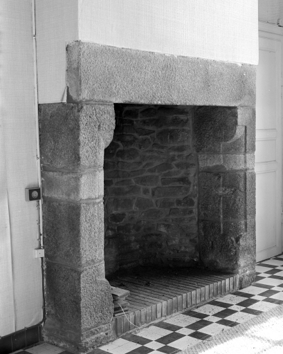 Logis, rez-de-chaussée, pièce est, cheminée (état en 1990)Immatriculation