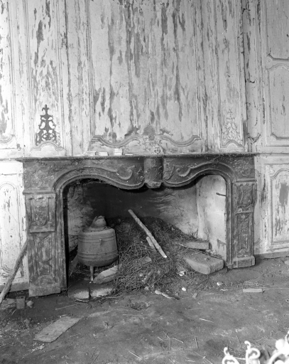 Logis, rez-de-chaussée, salle ouest, cheminée (état en 1990)Immatriculation