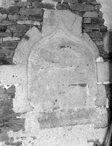 Logis, rez-de-chaussée, salle ouest, mur nord, ancien passe-plat (état en 1990)Immatriculation