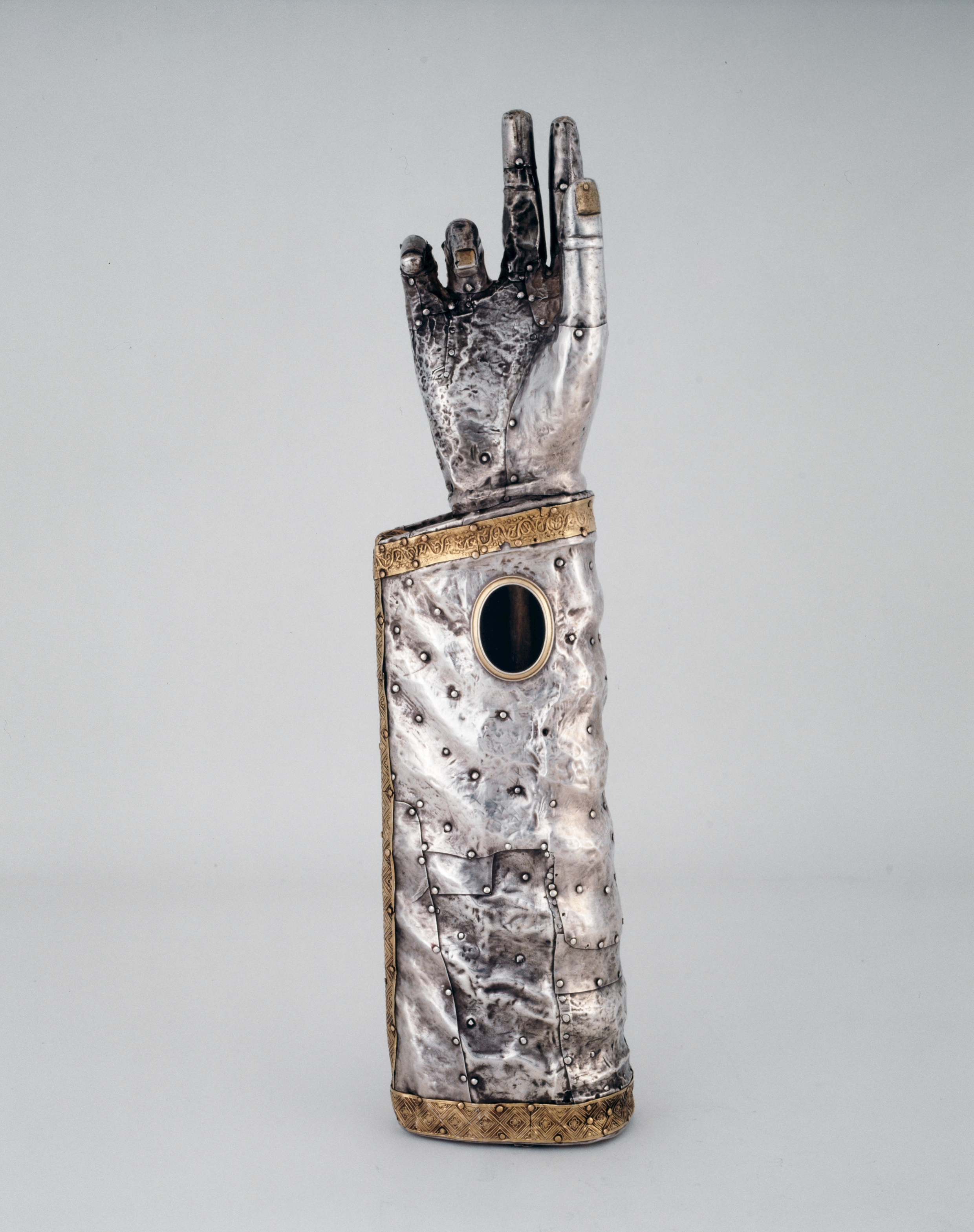 Bras-reliquaire vu du côté de la paume de la main (état en 1990)Immatriculation