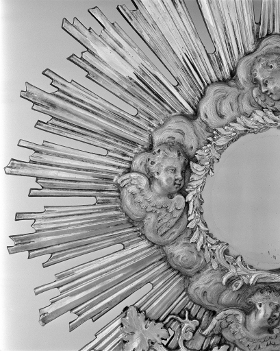 Détail d'un ange encadrant la lunule sur la face antérieureImmatriculation