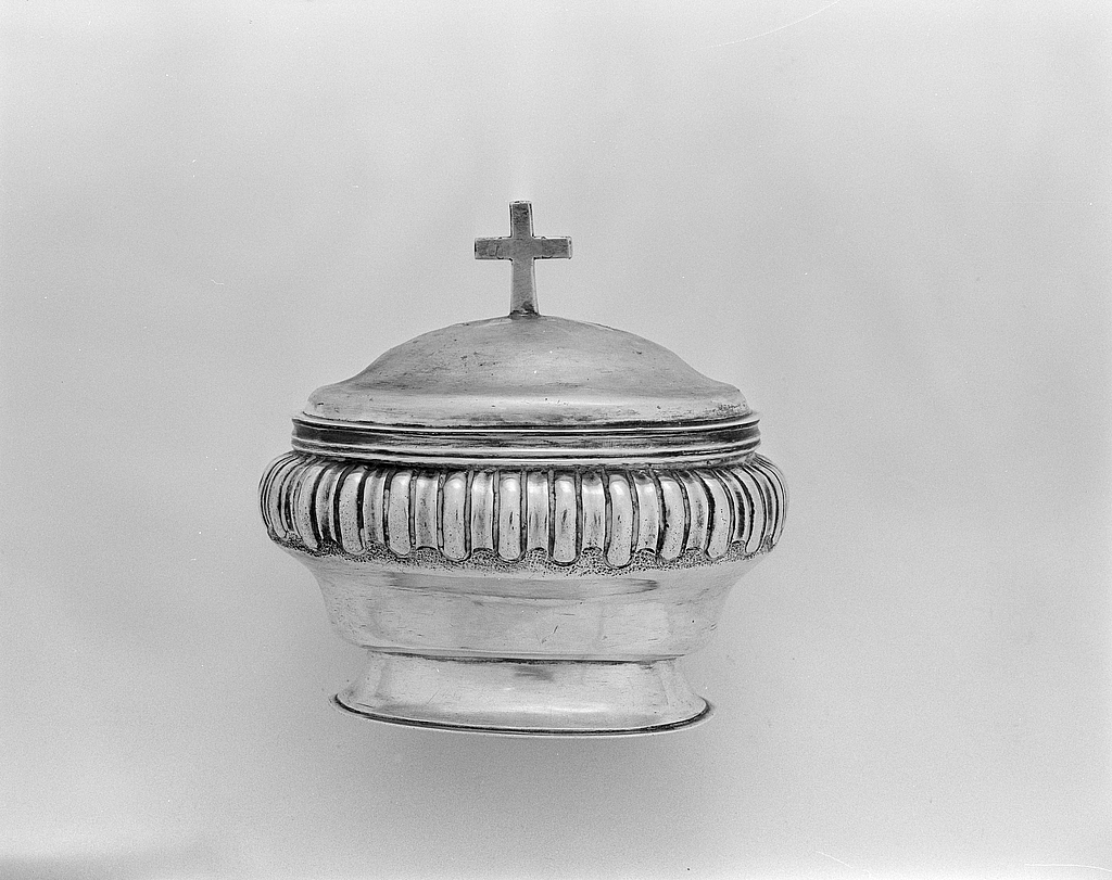Boîte aux saintes huiles, église paroissiale Saint-Colomban (Plougoulm),
