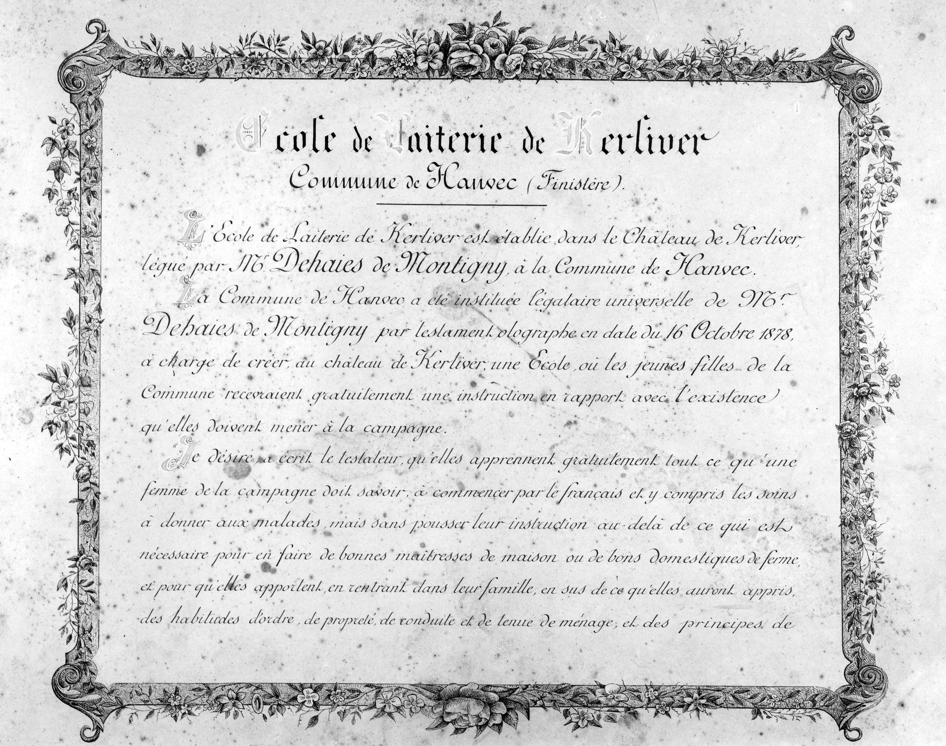 Ecole de laiterie, acte de fondation de l'école (album de photographies anciennes de l'établissement)Immatriculation