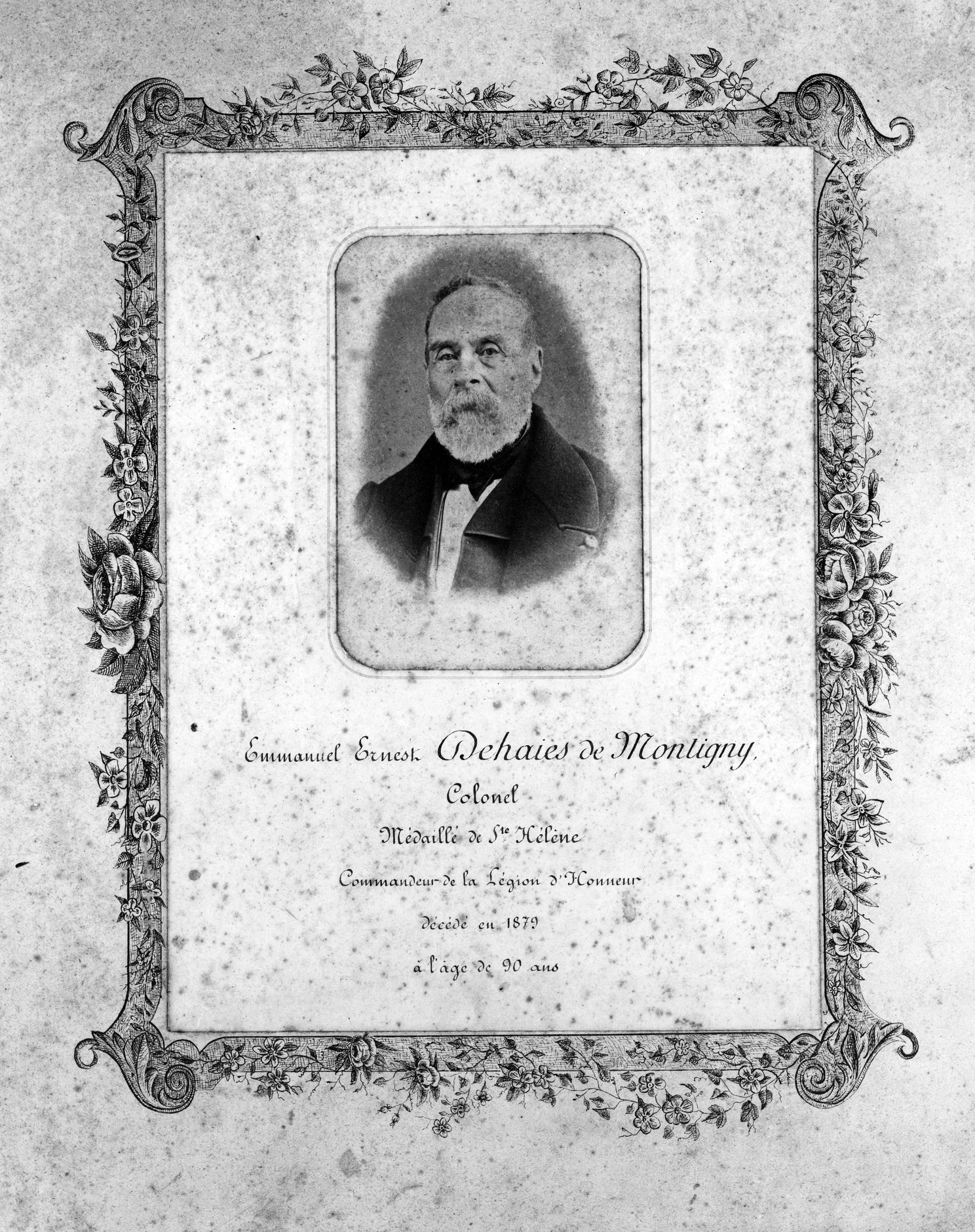 Ecole de laiterie. Portrait du fondateur de l'école : Emmanuel Ernest Dehaies de Montigny (album de photographies anciennes de l'établissement)Immatriculation