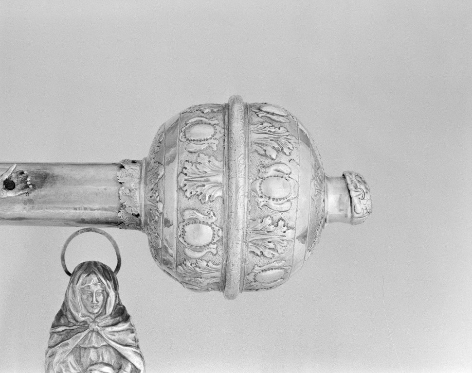 Détail d'un pommeau avec décor à cartouche perlé.Immatriculation