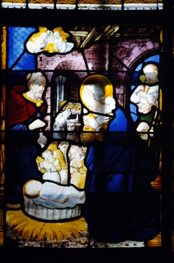 Verrière (verrière historiée) : Enfance du Christ, Vie de la Vierge (baie 3),
