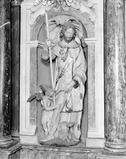 Vue générale de la statue de Saint-Roch (niche de gauche) retable Nord.Immatriculation