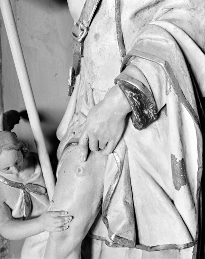 Statue de Saint-Roch, détail main gauche.Immatriculation