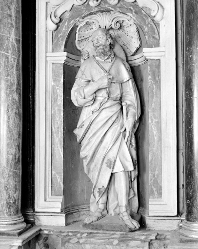 Vue générale de la statue de Saint-Jacques (niche de droite).Immatriculation