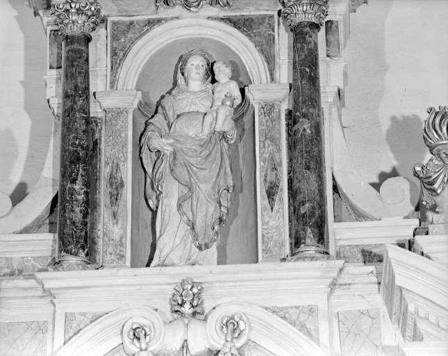 Vue générale de la statue de la Vierge à l'Enfant (niche supérieure).Immatriculation