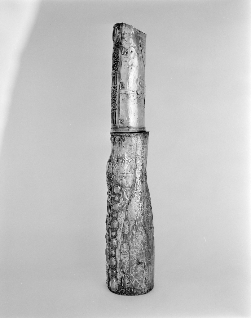 Reliquaire morphologique (jambe reliquaire), de saint Gildas, abbaye de bénédictins Saint-Gildas, de bénédictins de la congrégation de Saint-Maur, de soeurs de la charité de Saint-Louis (Saint-Gildas-de-Rhuys),