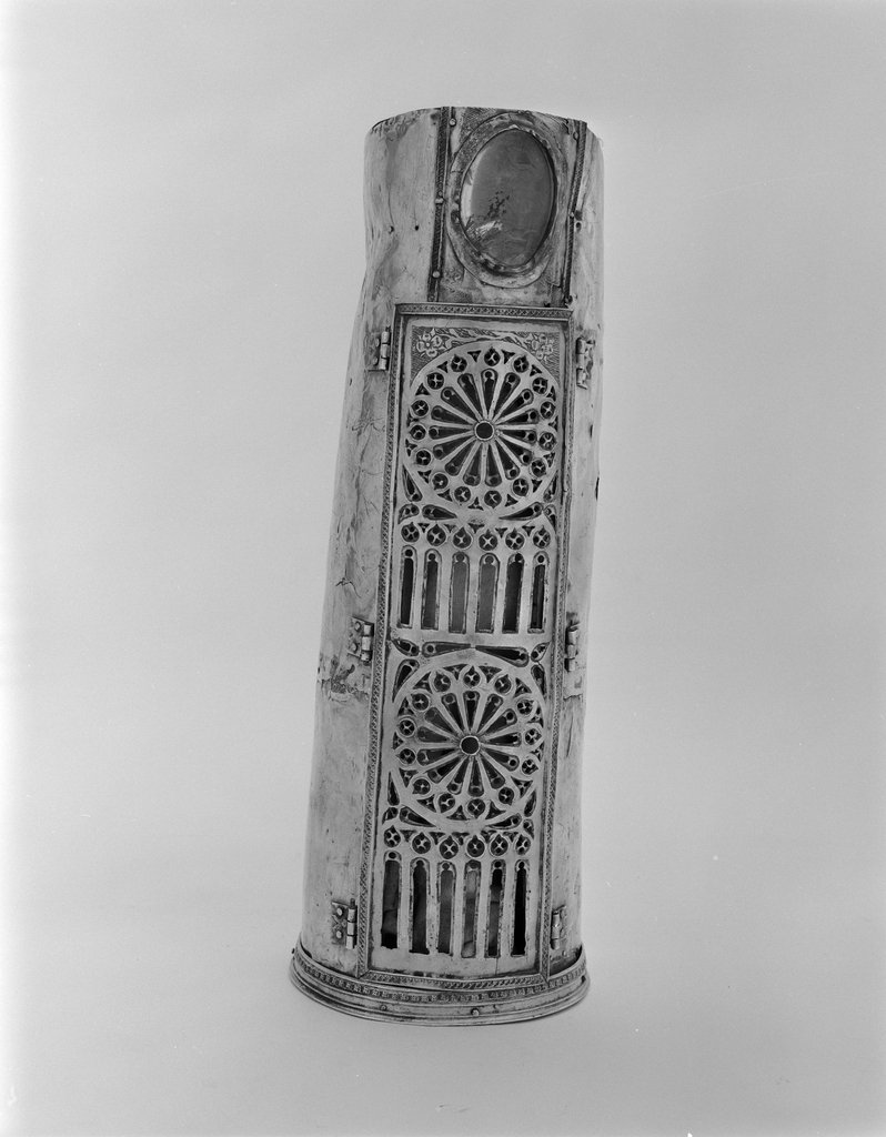 Reliquaire morphologique (jambe reliquaire), de saint Gildas, abbaye de bénédictins Saint-Gildas, de bénédictins de la congrégation de Saint-Maur, de soeurs de la charité de Saint-Louis (Saint-Gildas-de-Rhuys),