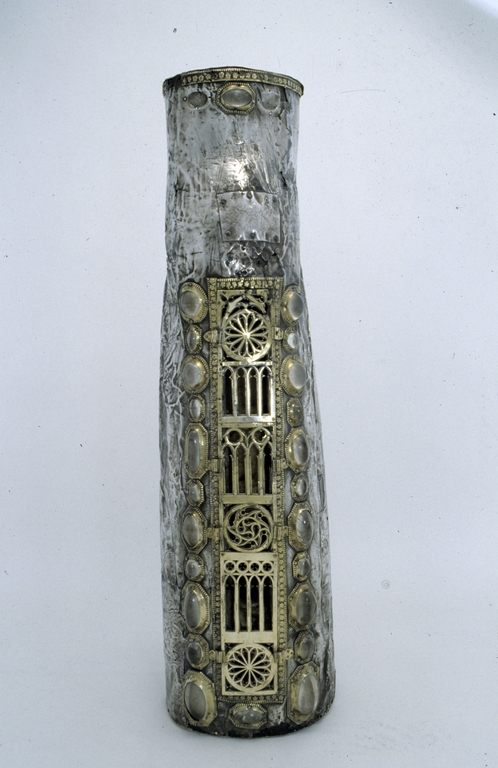 Reliquaire morphologique (cuisse reliquaire), de saint Gildas, abbaye de bénédictins Saint-Gildas, de bénédictins de la congrégation de Saint-Maur, de soeurs de la charité de Saint-Louis (Saint-Gildas-de-Rhuys),