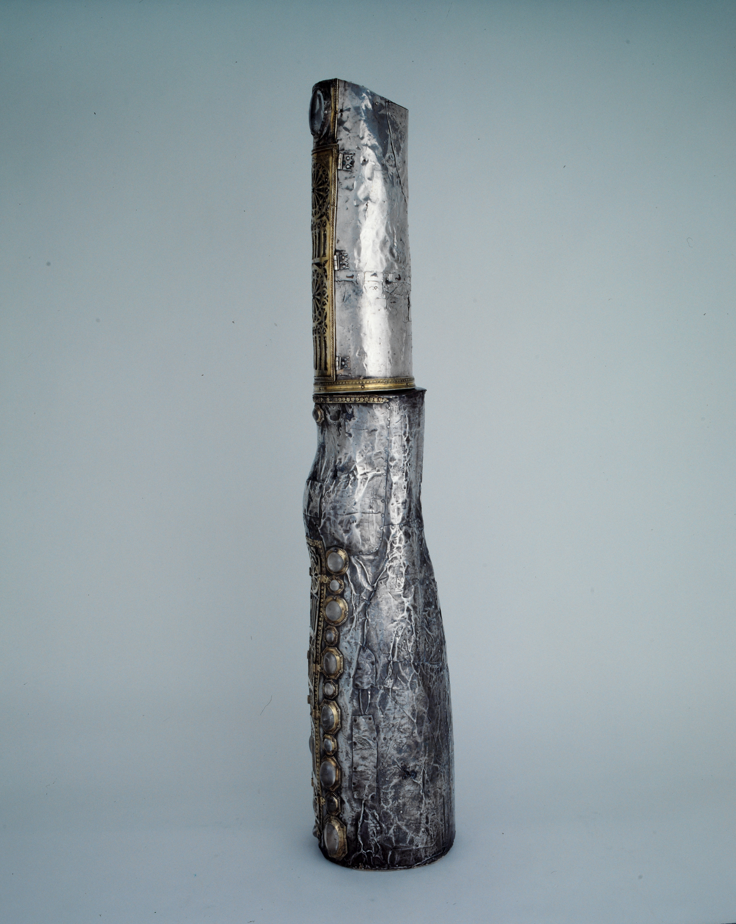 Reliquaire morphologique (jambe reliquaire), de saint Gildas, abbaye de bénédictins Saint-Gildas, de bénédictins de la congrégation de Saint-Maur, de soeurs de la charité de Saint-Louis (Saint-Gildas-de-Rhuys),