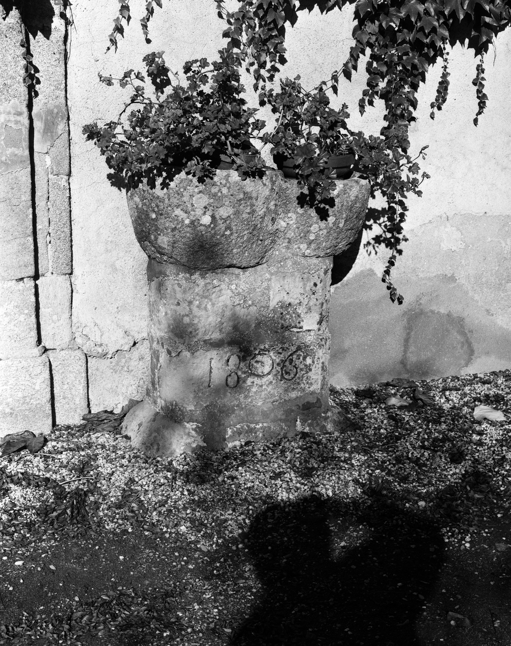 Logis prieural, partie nord, façade ouest : bénitier.Immatriculation