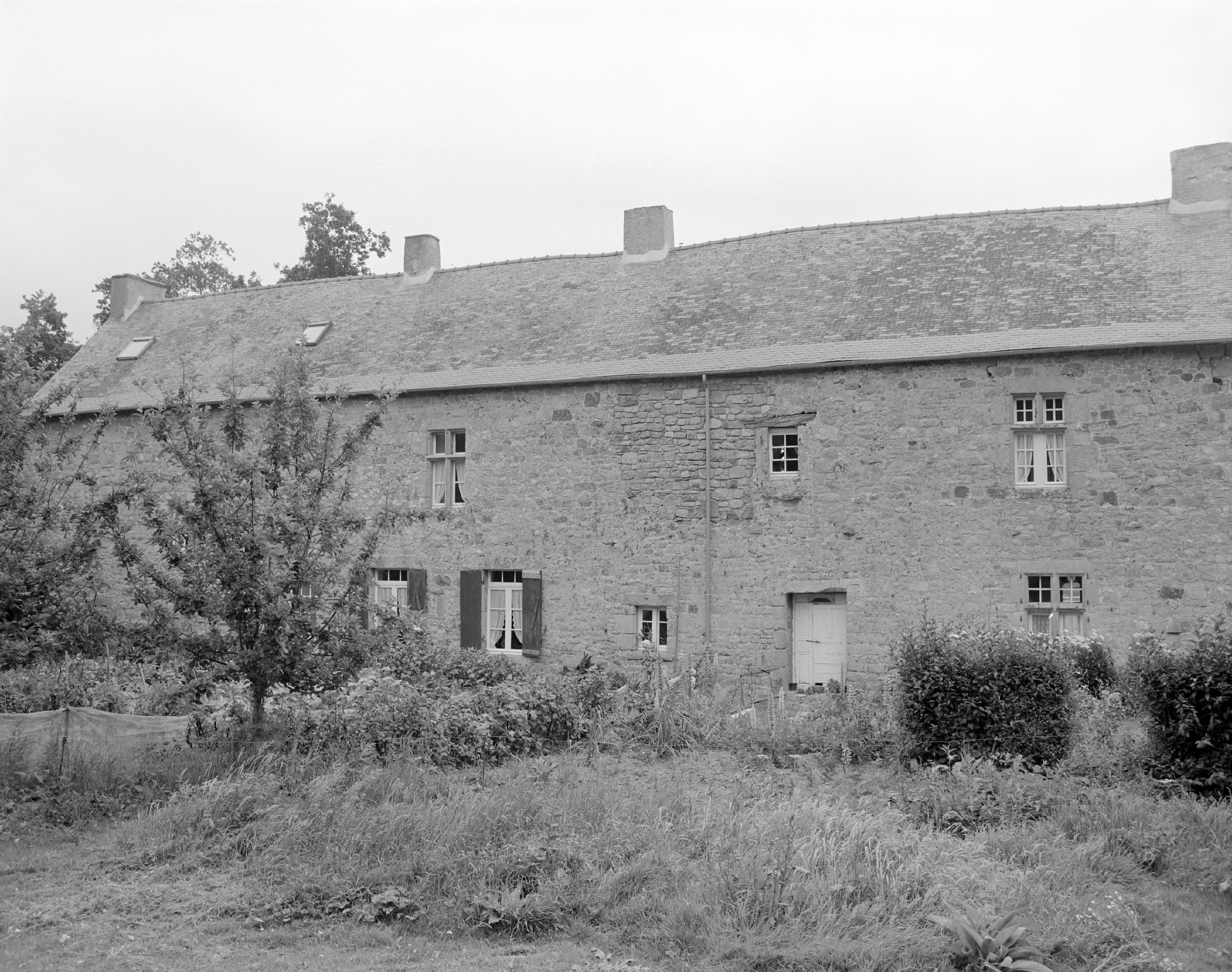 Ploubezre, Le Launay : manoir, vue partielle de l'élévation postérieure orientée vers le sud-ouest, photographie de 1991. Cette façade a été modifiée au fil du tempsImmatriculation