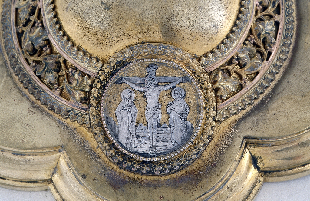 Détail médaillon du pied : CrucifixionImmatriculation