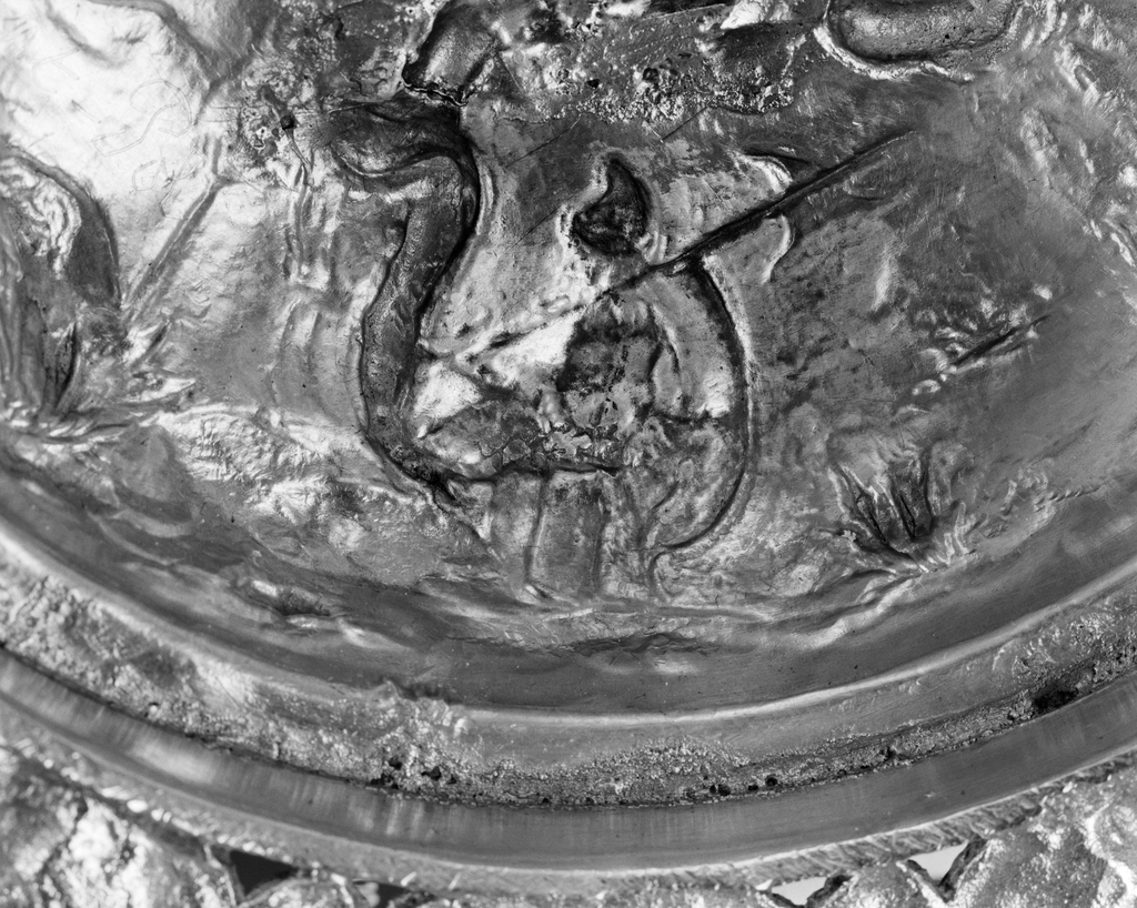 Détail du dessous du pied, traces de poinçons.Immatriculation
