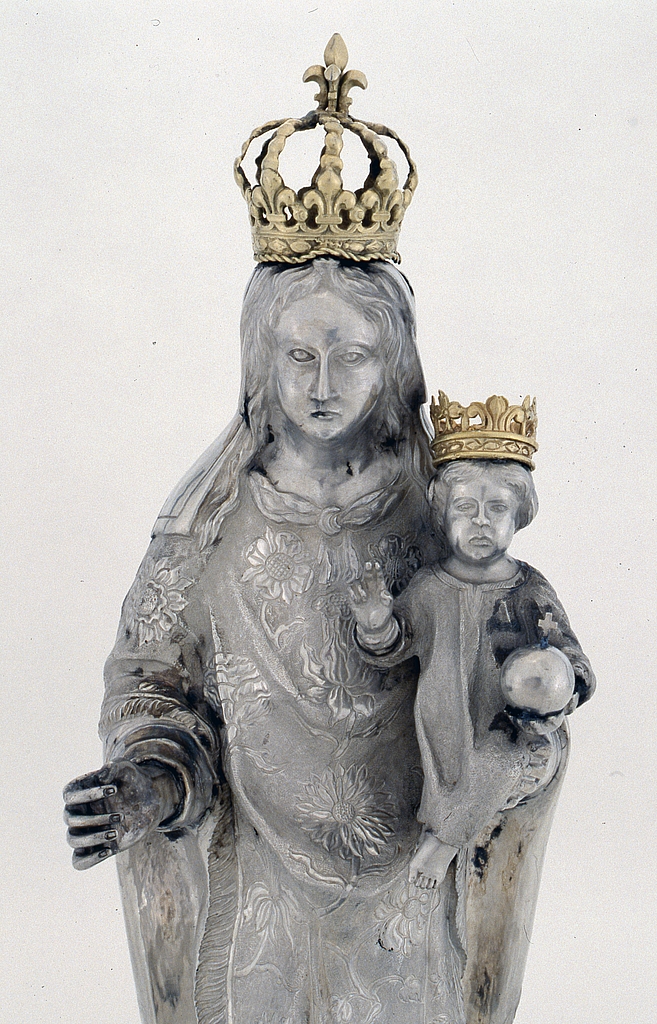 Détail du buste : Vierge et Enfant.Immatriculation