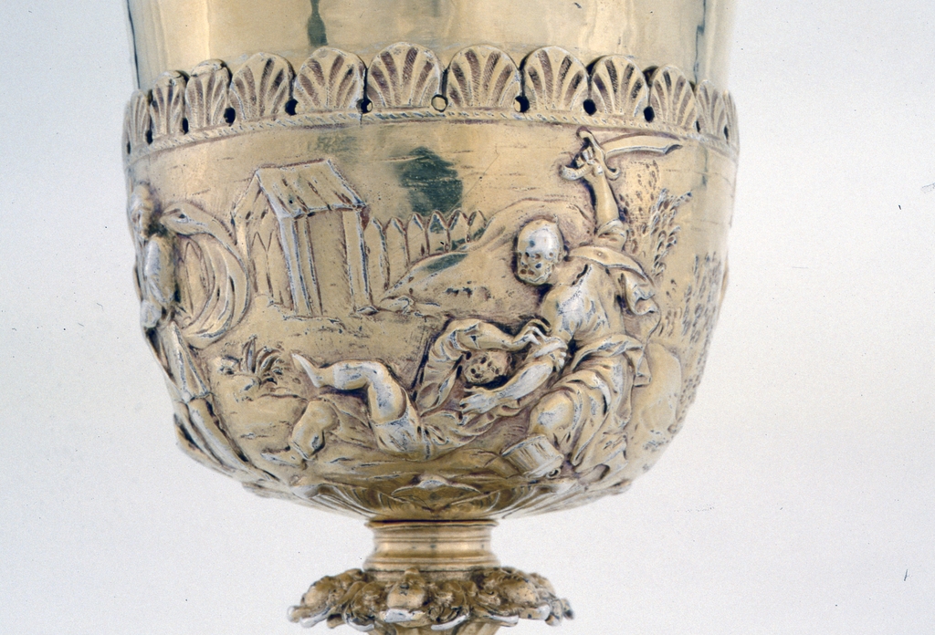 Détail de la coupe, saint Pierre et Malchus.Immatriculation