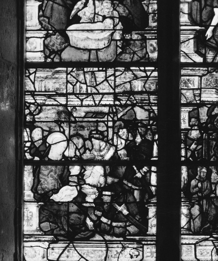 Verrière à personnages de la baie 4 : Enfance du Christ, Pentecôte,