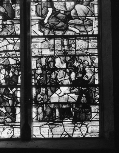 Verrière à personnages de la baie 4 : Enfance du Christ, Pentecôte,