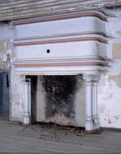 Logis rez-de-chaussée surélevé, 1ère chambre, cheminée, état avant restaurationImmatriculation