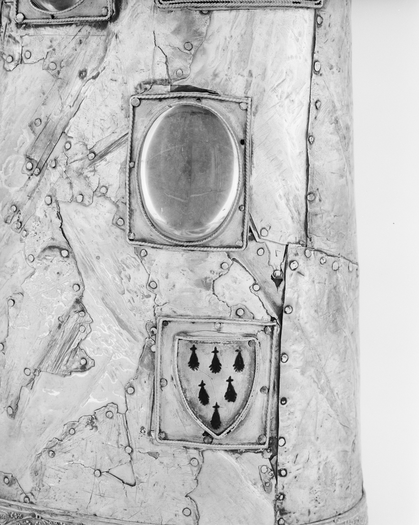 Détail des armoiries et du cabochon.Immatriculation