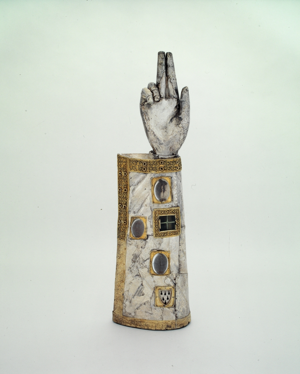 Reliquaire morphologique (bras-reliquaire), de saint Gildas, abbaye de bénédictins Saint-Gildas, de bénédictins de la congrégation de Saint-Maur, de soeurs de la charité de Saint-Louis (Saint-Gildas-de-Rhuys),