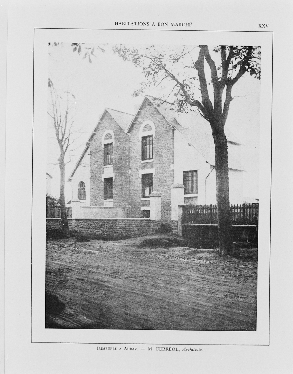 Maison, reproduction du recueil d'architecture, photographie de la planche XXV représentant immeuble à Auray, élévation principale.Immatriculation