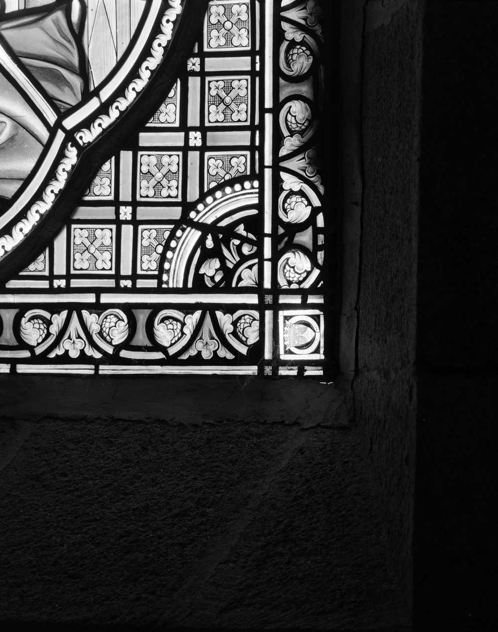 Verrière 1, détail signature Carmel du Mans.Immatriculation