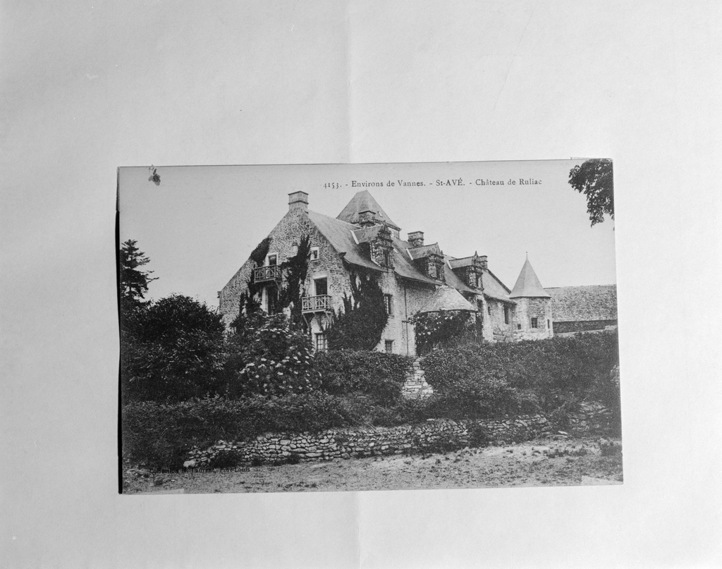 Manoir, vue générale sud, carte postale ancienne. Coll. Laurent, Port-Louis. (Doc. A.D. Morbihan).Immatriculation