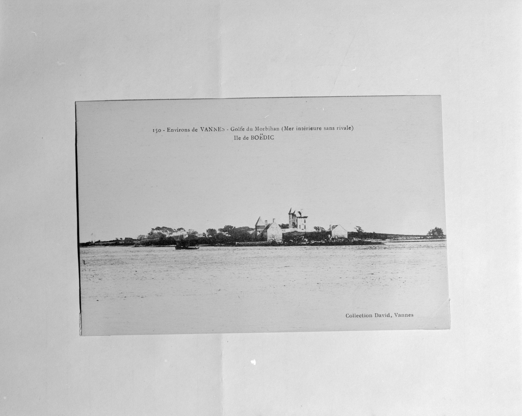 Ile de Boêdic, maison, vue générale ouest, carte postale ancienne. Coll. David (Doc. A.D. Morbihan).Immatriculation