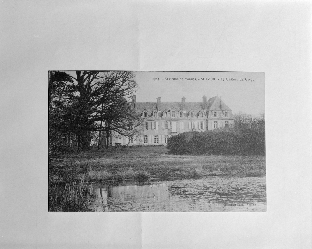 Château, logis, élévation ouest, carte postale ancienne, Coll. David, Vannes. (Doc. A.D. Morbihan).Immatriculation