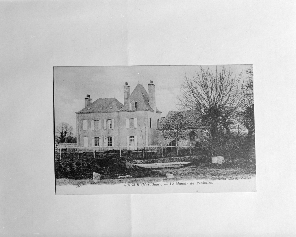Manoir, logis et chapelle, carte postale ancienne (Coll. David, Vannes) A.D. Morbihan.Immatriculation