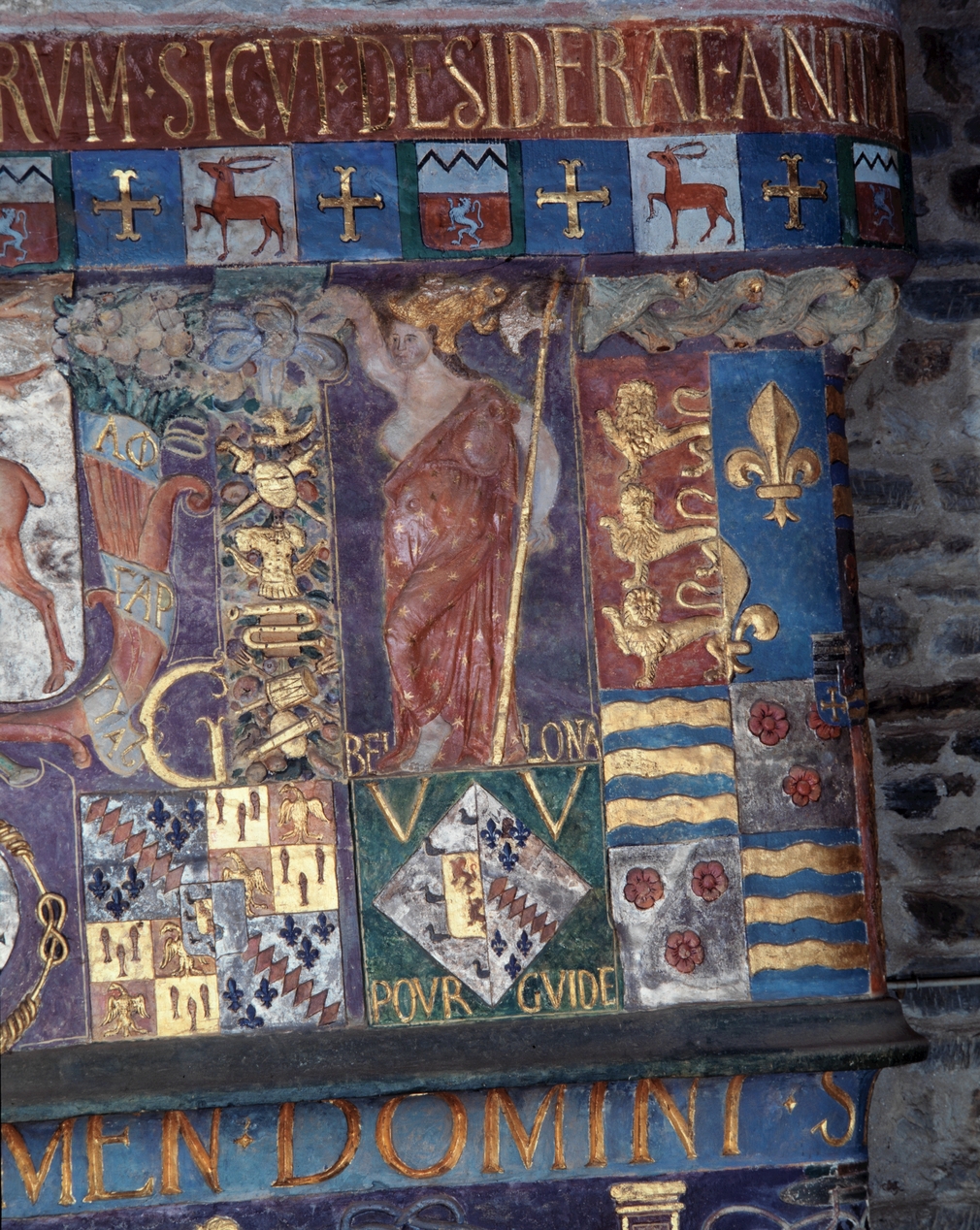 Château, cheminée, partie droite de la hotte : détail de Bellonne.Immatriculation